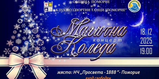 Клуб по спортни танци „Поморие“ представя коледен концерт „Магична Коледа“, който ще се проведе в два самостоятелни спектакъла в залата на НЧ „Просвета 1888“-Поморие: От …