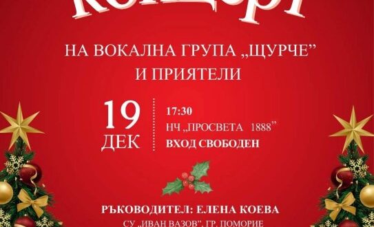 Заповядайте на 20.12.2025 г. /събота/ от 18.30 часа на празничен концерт в залата на НЧ „Просвета 1888“ – Поморие. Поздрав към жителите и гостите на …