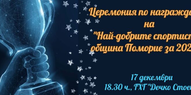 На 17.12. е церемонията по награждаване на най-добрите спортисти за 2025 г. в община Поморие