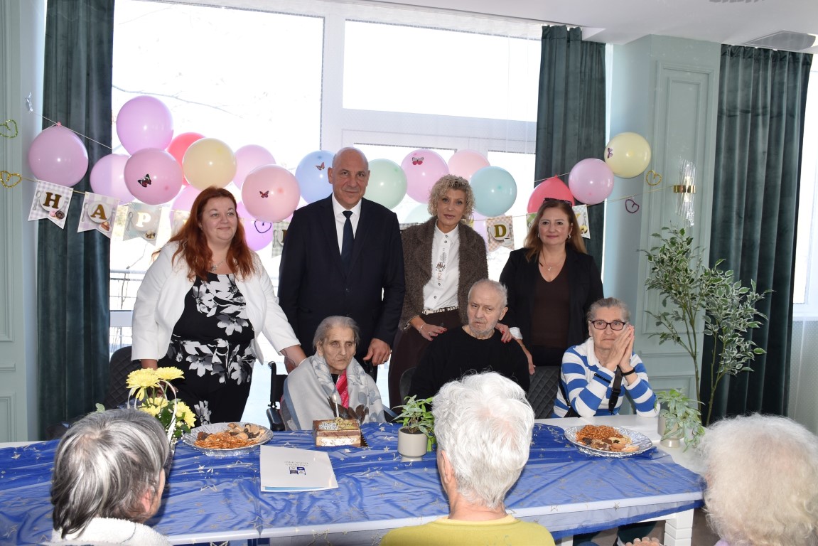 „Благодаря на служителите, работещи в дома, за грижата, която полагат за тези хора. Поздравявам ви за начина, по който зарадвахте госпожа Колева по повод личния ѝ празник. Макар да е почти незряща, аз съм убеден, че е усетила вниманието ви със сърцето си. Пожелавам на всички вас да достигнете и да живеете достойни и пълноценни старини“, каза кметът Алексиев, обръщайки се към екипа и към възрастните хора в дома.