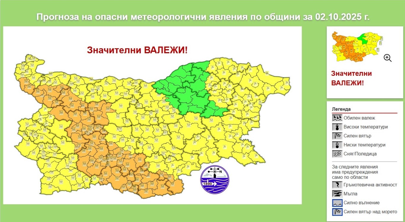Във връзка с прогнозата на НИМХ за периода 02 – 05.10.2025 г. и очакванията за преминаващ студен атмосферен фронт с интензивни валежи от дъжд, са предприети следните мерки от Община Поморие: