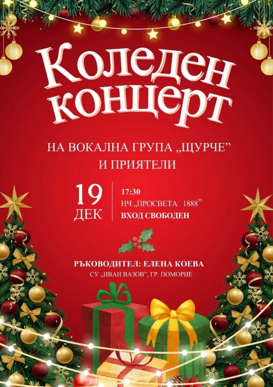 Музикален коледен концерт ще има на 19.12.2025 г. /петък/ от 17.30 часа в залата на НЧ „Просвета 1888“ – Поморие.