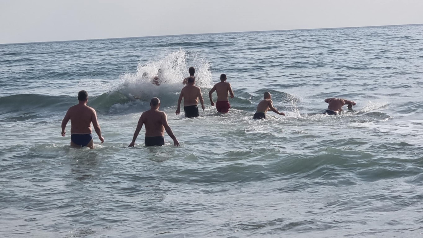 Десетки жители и гости се събраха на плажа, за да наблюдават ритуала. Смелчаците, които се хвърлиха в морето за кръста, бяха благословени от отец Димитър.