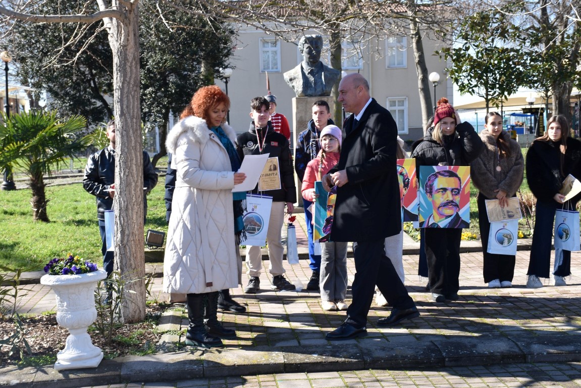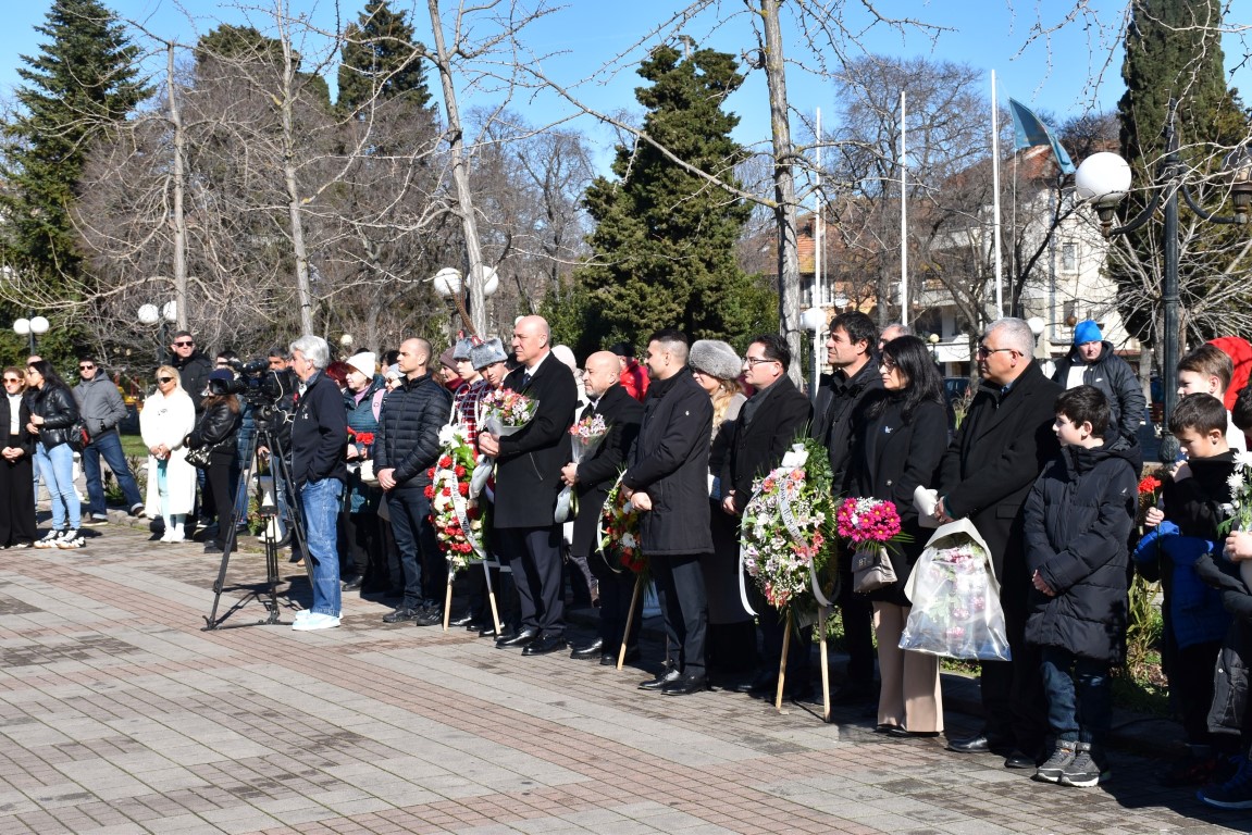Пред святото дело на националния герой глави сведоха кметът Иван Алексиев, председателят на Общински съвет Адам Адамов, зам.-кметът Янчо Илиев, общински съветници, признателни граждани, както и десетки деца, доведени от своите учители, възпитаващи най-малките в любов към род и Родина.