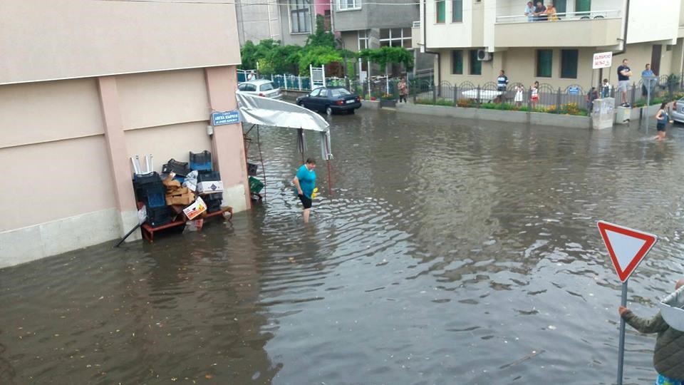 Пороен дъжд заля Поморие. До 26 литра на квадратен метър се изсипаха и наводниха улиците на града.