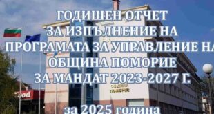Съобразно разпоредбата на чл.44, ал.5 от ЗМСМА кметът Иван Алексиев представя пред Общински Съвет – Поморие годишния отчет за изпълнение на програмата за управление на Община Поморие през 2025 г. Вижте го тук: ГОДИШЕН ОТЧЕТ ЗА ИЗПЪЛНЕНИЕ НА ПРОГРАМАТА ЗА УПРАВЛЕНИЕ ЗА 2025 ГОДИНА