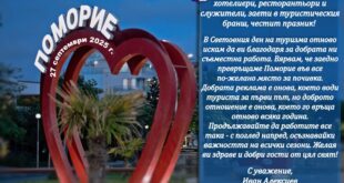 В Деня на туризма кметът на община Поморие Иван Алексиев се обръща към туристическия бранш с думи на благодарност за добрата съвместна работа и с вярата, че с общи усилия Поморие ще се превърне в желано място за почивка. Световният ден на туризма се отбелязва всяка година на 27 септември, за да се повиши осведомеността сред международната общност за значението …